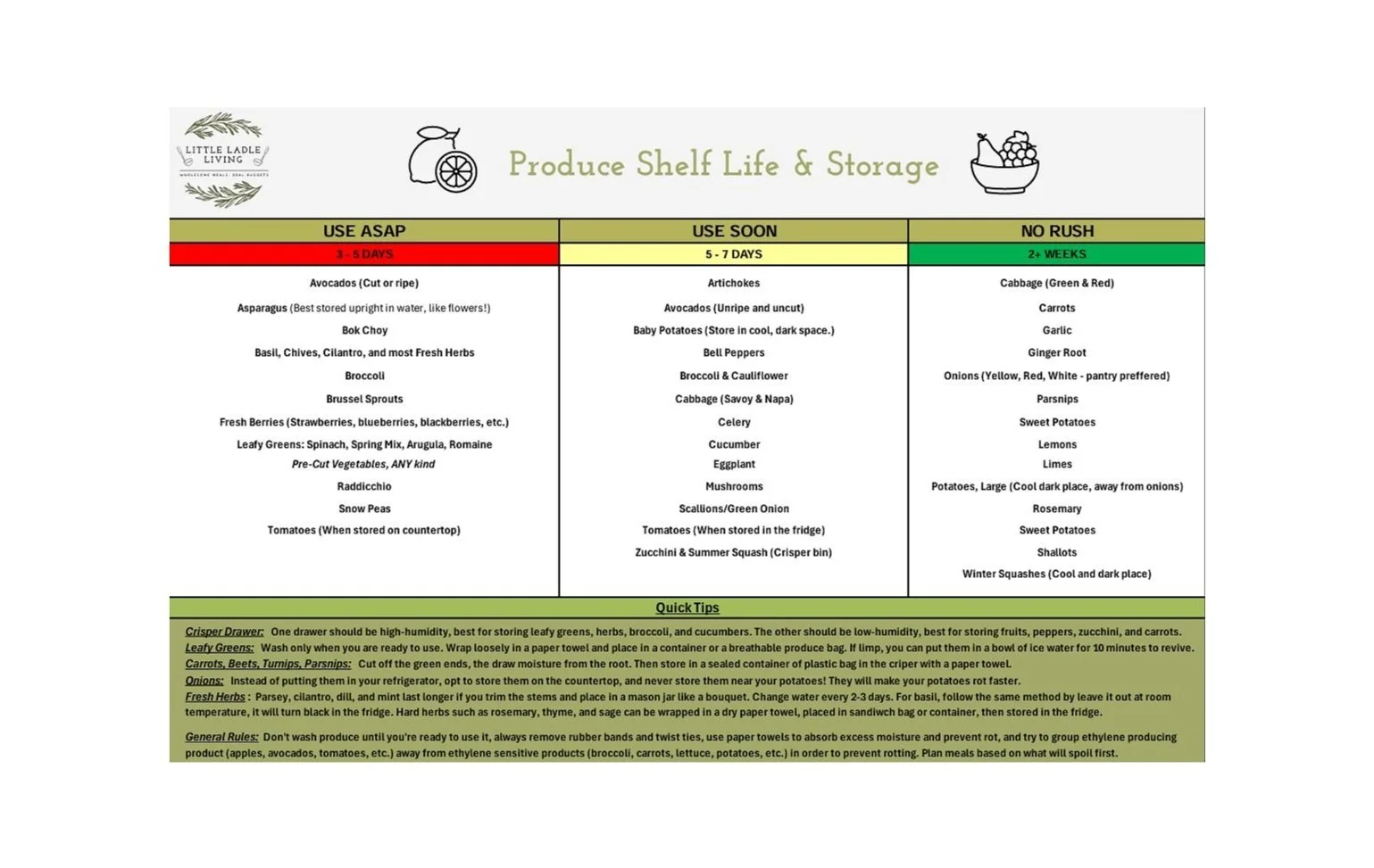 One of the easiest ways to cut down on food waste is simply knowing how long your fruits and veggies stay fresh. Some items only last a few days, others a week or more—and when you know which is which, it’s way easier to plan meals without the guilt of tossing slimy spinach or mushy berries.